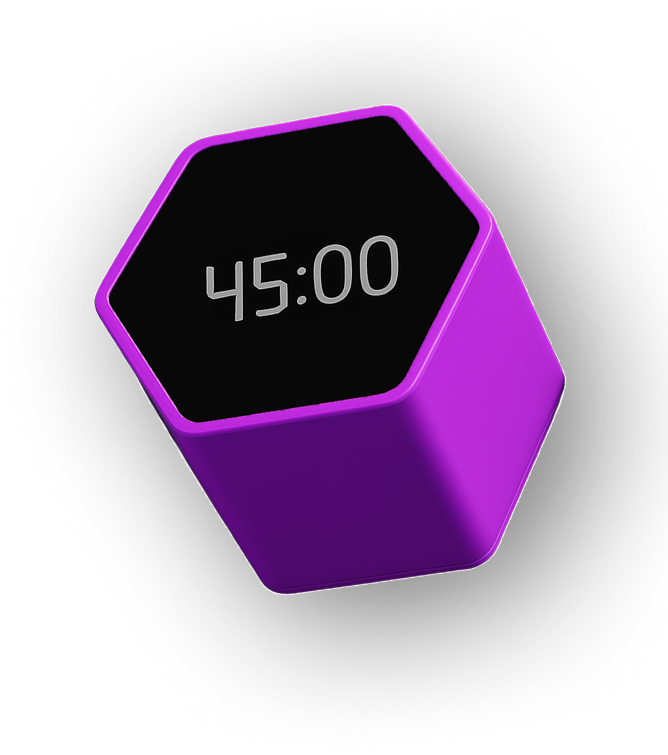 Each hexagonal wall can be configured as a clock, stopwatch, countdown, or pomodoro timer. Connect via Bluetooth to your mobile app for the ultimate productivity experience.